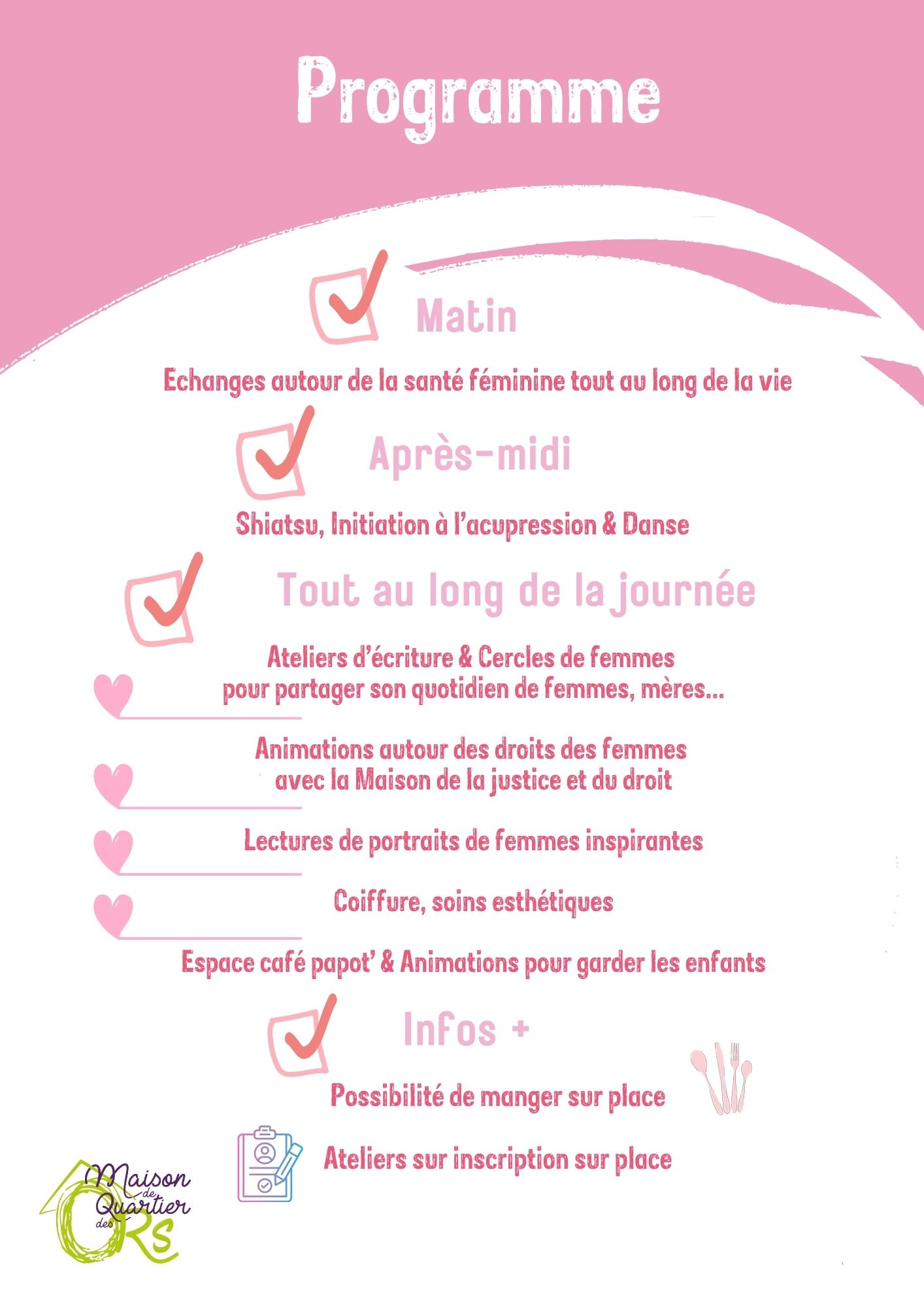 La Maison de Quartier des Ors organise une journée dédiée aux femmes le samedi 8 novembre 2025.
