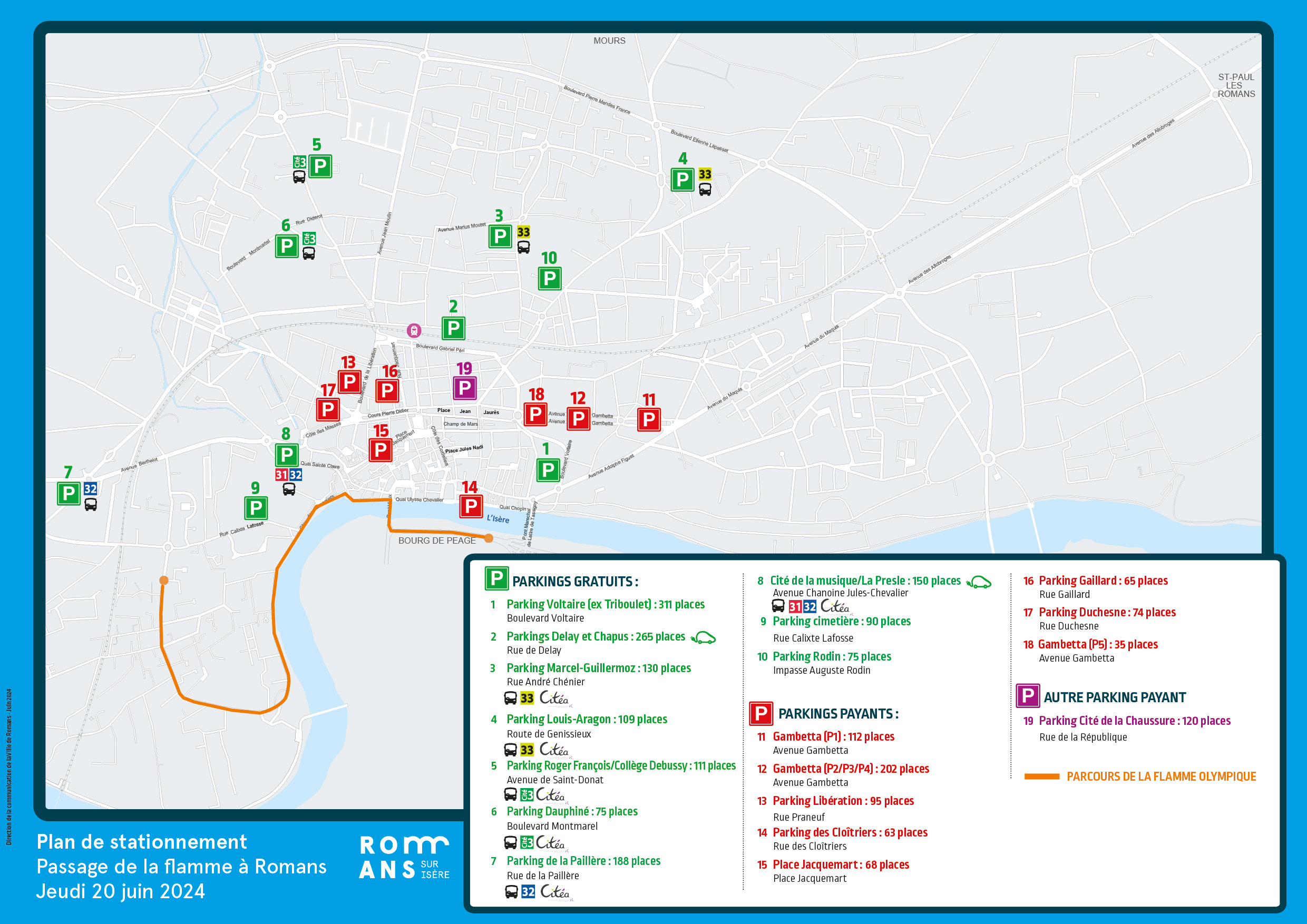 La ville de Romans est fière et heureuse d'accueillir la flamme olympique le jeudi 20 juin. Cet événement unique célèbre les valeurs du sport et d'unité des Jeux Olympiques et Paralympiques.