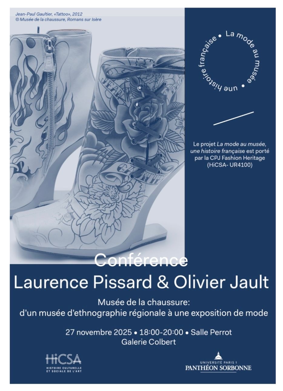 Laurence Pissard, responsable du musée de la Chaussure, animera une conférence, ce jeudi 27 novembre à l’Institut National d’Histoire de l’Art (INHA) à Paris, dans le cadre d’un séminaire de recherche sur le thème « Mode, vêtements et costumes : la constitution d’un patrimoine muséal ».