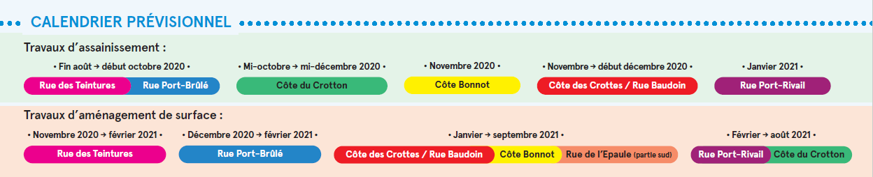 Sont concernées : les rues Port-Rivail, Port-Brûlé, de l'Epaule, des Teintures, côte des Crottes / rue Baudouin, côte Bonnot, côte du Crotton. Ici, retrouvez toutes les infos sur le projet, en cours et à venir…